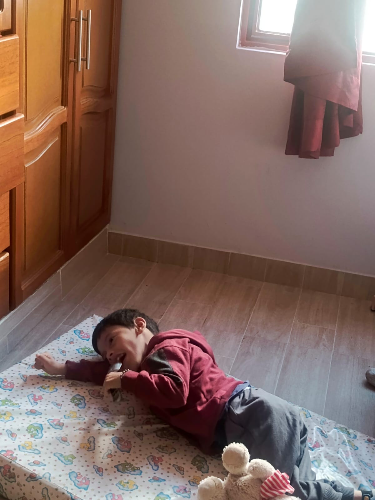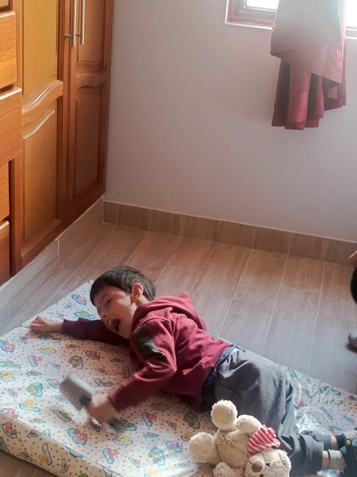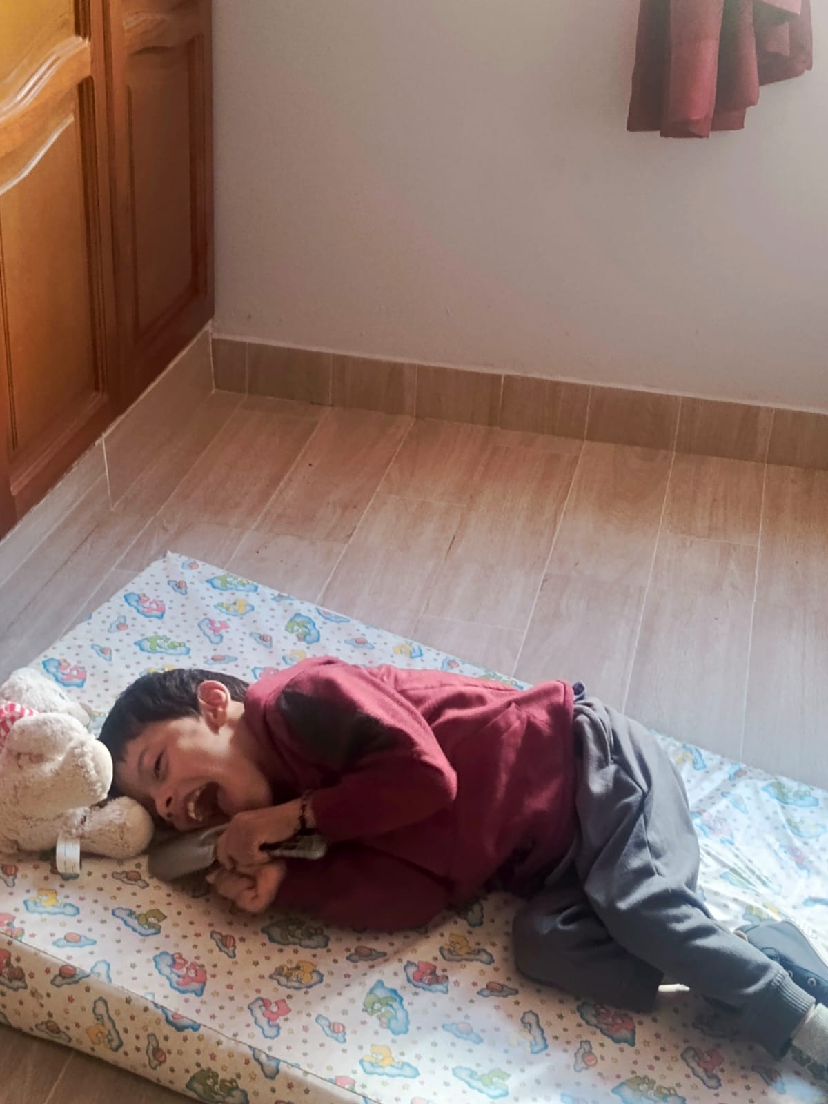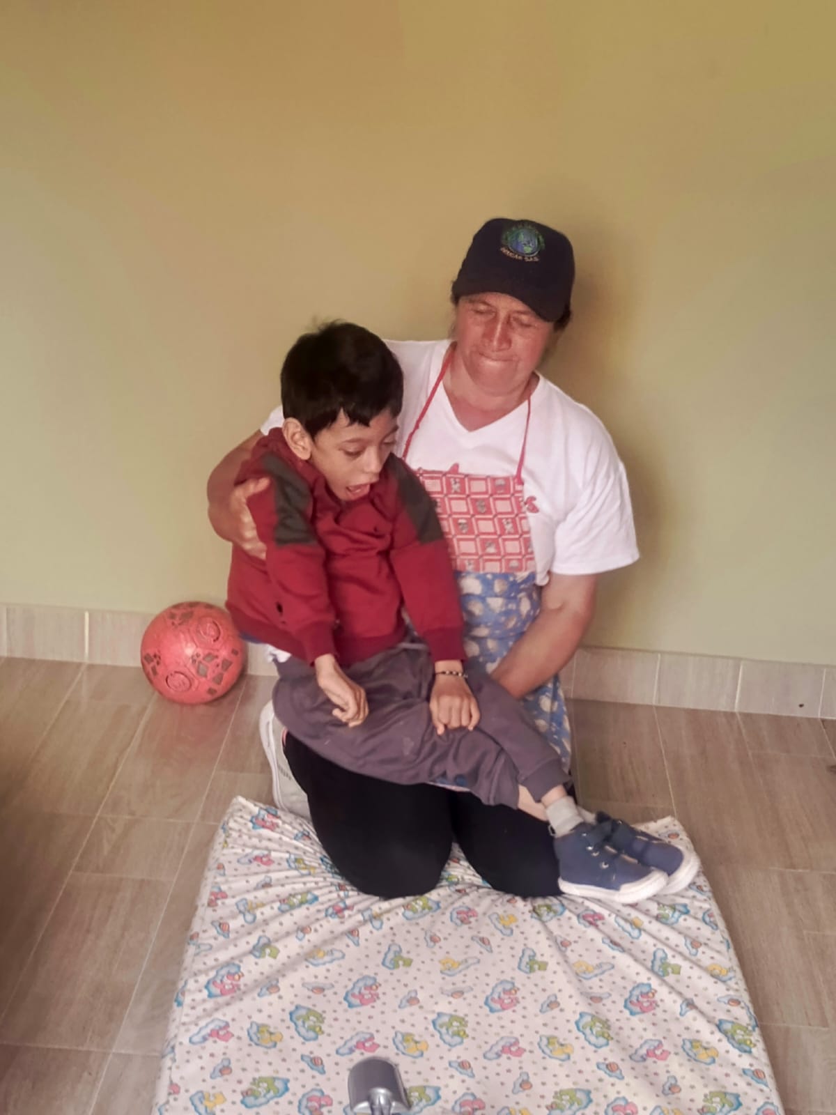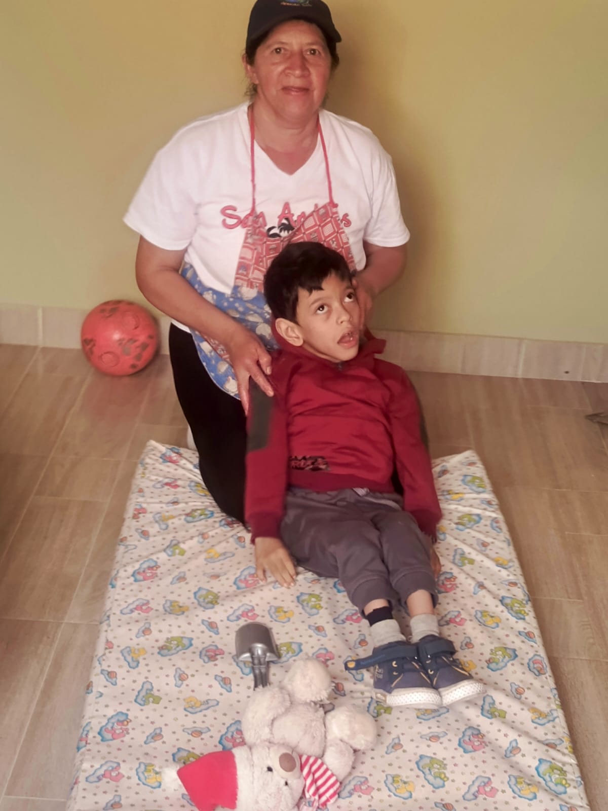 Su mamá y familia lo acompañan en cada paso, brindándole amor, cuidados constantes y la esperanza de verlo avanzar con el apoyo de las terapias y del compromiso diario en su hogar.